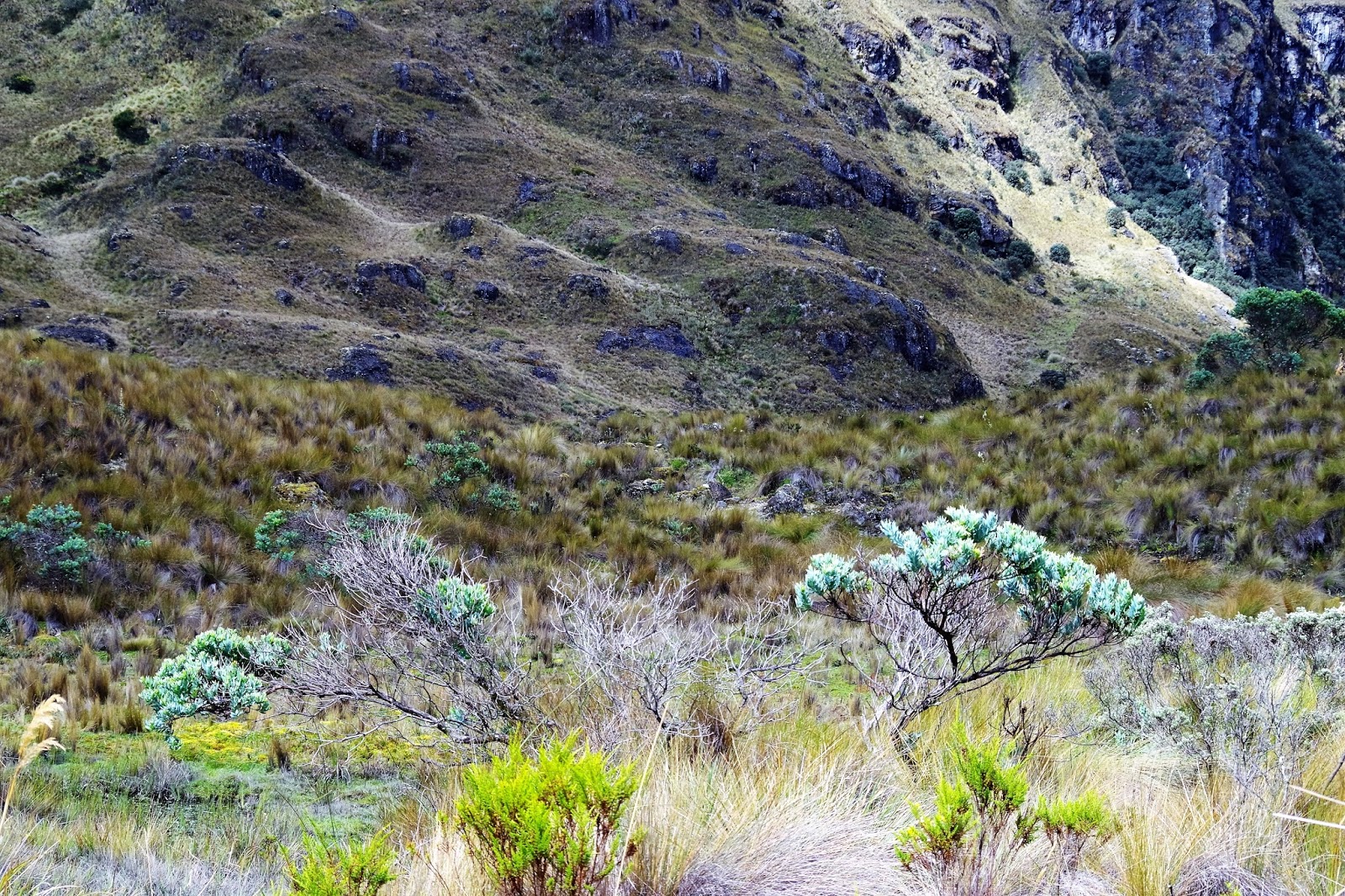 I had no idea how this could have happened, especially that I have followed the trail all the way. Except of the times when I lost it and had to go back to find it again. These times were specifically during descent on a steep slopes where no marks were visible. You think you are going down anyway and it will not matter much if you wander off a little bit. It mattered in El Cajas. Couple times I arrived in a wetland where there was no option to continue dry and no trail was visible. Like on the picture below, I arrived at the bottom just to find out that around me was only wetland and swamps, as beautiful as it looks. Not likeable unfortunately.